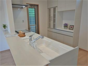 すれ違いも出来る広いキッチンスペース